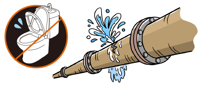 普段何気なく使っている水洗トイレは、災害時には前提条件が大きく変わります。地震や豪雨などによって断水が起きると、トイレを流すための水が確保できなくなります。また、見た目には問題がなさそうでも、下水管や排水設備が破損している可能性があり、無理に流すことで汚水が逆流する危険性もあります。